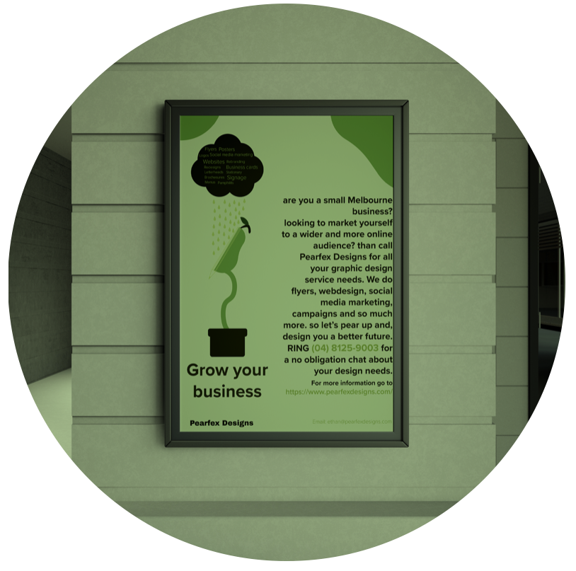 At Pearfex designs are here to support small businesses in Melbourne with all their graphic design needs. Need a new logo or want to change, an old one we’re on it, need a some promo posters and flyers, we’ll do it. Do you need a new design for a website or some social media advertising, yep we can and will do it. We even do rebranding.