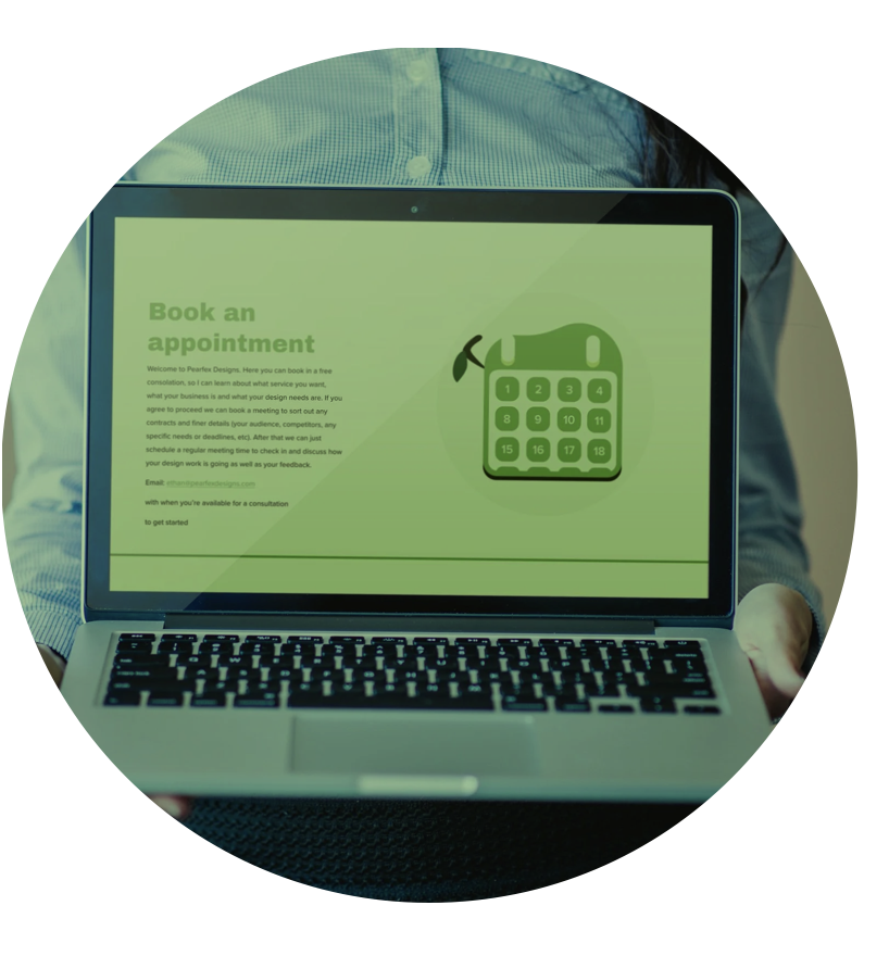 Welcome to Pearfex Designs. Here you can book in a free consolation, so I can learn about what service you want, what your business is and what your design needs are. If you agree to proceed we can book a meeting to sort out any contracts and finer details (your audience, competitors, any specific needs or deadlines, etc). After that we can just schedule a regular meeting time to check in and discuss how your design work is going as well as your feedback.