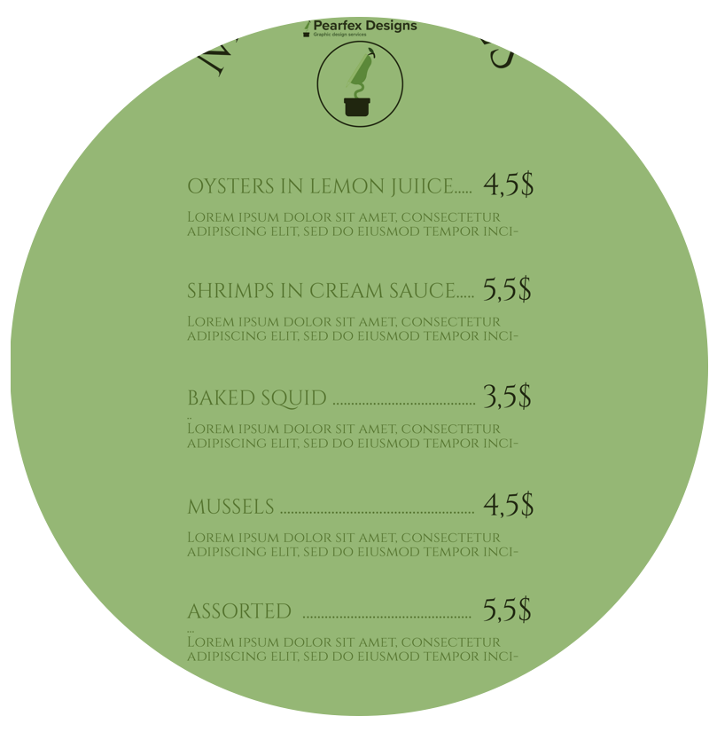 Designing menus, Pamphlets, brochures. Can take 2-4 weeks depending on design requirements and client feedback. Pricing will be negotiated at initial meeting (based on any deadlines and estimated time for completion), 10% deposit is required.